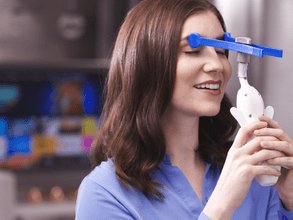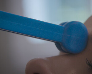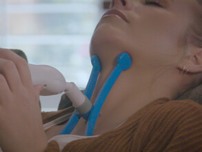 Sanitize tuning fork with some rubbing alcohol or soap and water - or use rubber gloves. With tuning forks close together, insert into mouth. Push forks open outside of the teeth into the cheeks. Tilt Tuner slowly up and down, massaging the jaw muscles. Next, open jaw wide and close slowly 5-7 times. Before removing the tuning forks, squeeze the pads together and then remove. Sanitize again.